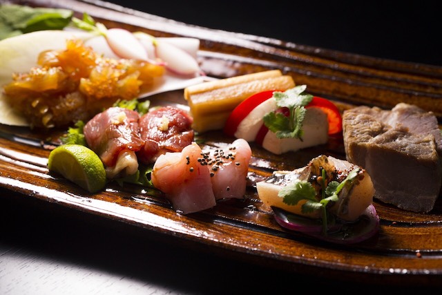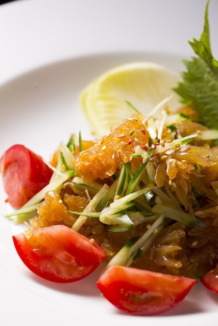 また、熊本名物タイピーエンはちゃんぽん麺の春雨版。熊本では小学校の給食に出てくるほどポピュラーで、豚骨をつかって白濁したスープは、熊本ラーメンでも使われるニンニクの焦がし油を入れています。麺は食感のいい少し太めの春雨。具材は旬の海鮮や、色とりどりのものをたくさん楽しんでいただけるようにしています。お酒を飲んだ後にもぴったりです。